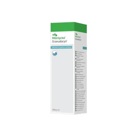 Granudacyn® to wyrób medyczny leczniczy w postaci bezbarwnego roztworu. Preparat do płukania (irygacji) ran przeznaczony jest do oczyszczania i nawilżania ostrych, przewlekłych i zanieczyszczonych ran oraz oparzeń pierwszego i drugiego stopnia.