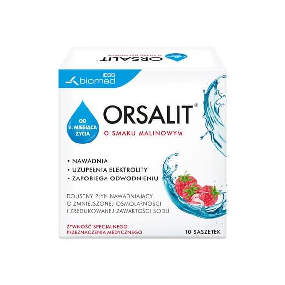 Orsalit o smaku malinowym to żywność specjalnego przeznaczenia medycznego w postaci proszku do sporządzania doustnego płynu nawadniającego (DPN), o zmniejszonej osmolarności i zredukowanej zawartości sodu, zgodnie z zaleceniami Europejskiego Towarzystwa Gastroenterologii, Hepatologii i Żywienia Dzieci (ESPGHAN). Jest odpowiedni do stosowania u dzieci od 6. miesiąca życia i osób dorosłych w sytuacjach, w których występuje ryzyko odwodnienia organizmu i zaburzeń gospodarki wodno-elektrolitowej (np. wymioty, biegunka). Skutecznie uzupełnia płyny i składniki mineralne, dzięki wykorzystaniu efektywnego mechanizmu wspólnego wchłaniania wody, sodu i glukozy. Może być stosowany u chorych na cukrzycę (konieczna jest wówczas kontrola poziomu cukru we krwi). W opakowaniu, wraz z saszetkami z proszkiem, znajduje się miarka, służąca do odmierzania ilości płynu, oraz słomka.
