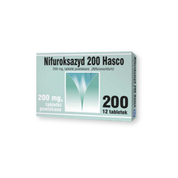 Lek Nifuroksazyd 200 Hasco, tabletki powlekane stosuje się w ostrej lub przewlekłej biegunce w przebiegu zakażeń bakteryjnych przewodu pokarmowego.