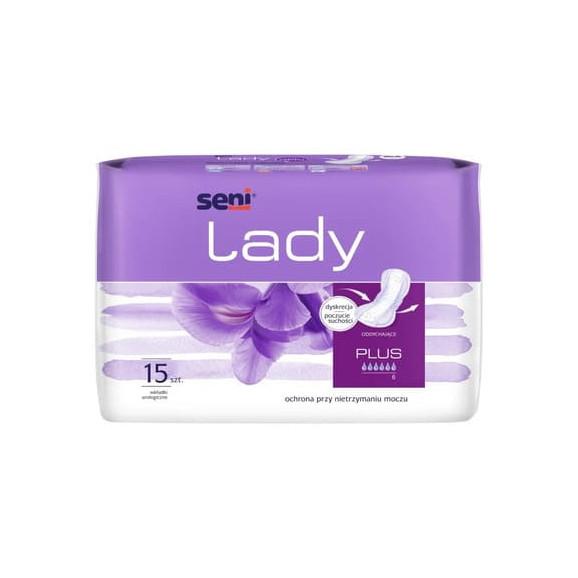 Seni Lady Plus to dyskretne, oddychające wkładki urologiczne. Przeznaczone są dla kobiet ze średnim nietrzymaniem moczu. Zapewniają wysokie poczucie suchości, komfort i wygodę. Dużo bardziej chłonne od zwykłych podpasek. Zapobiegają powstawaniu nieprzyjemnego zapachu moczu.