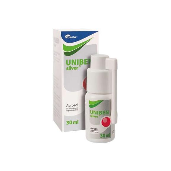 Wyrób medyczny Uniben Silver to aerozol do stosowania w jamie ustnej, który wspomaga leczenie oraz łagodzi stan zapalny błony śluzowej gardła. Polecany również w stanach zapalnych dziąseł, po zabiegach dentystycznych, a także po zabiegu usunięcia migdałków podniebiennych. Preparat może być stosowany bez ograniczeń wiekowych u małych dzieci oraz u osób dorosłych.