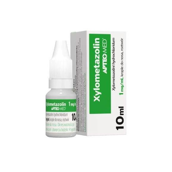 Nadmierne przekrwienie błony śluzowej nosa występujące w przebiegu przeziębienia, kataru siennego, alergicznego zapalenia błony śluzowej nosa, zapalenia zatok. Lek ułatwia odpływwydzieliny z zapalnie zmienionych zatok przynosowych. Dzięki zmniejszaniu przekrwienia błony śluzowej jamy nosowo-gardłowej może być stosowany wspomagająco w zapaleniu ucha środkowego. Xylometazolin Apteo Med ułatwia wziernikowanie nosa (badanie jamy nosowej).