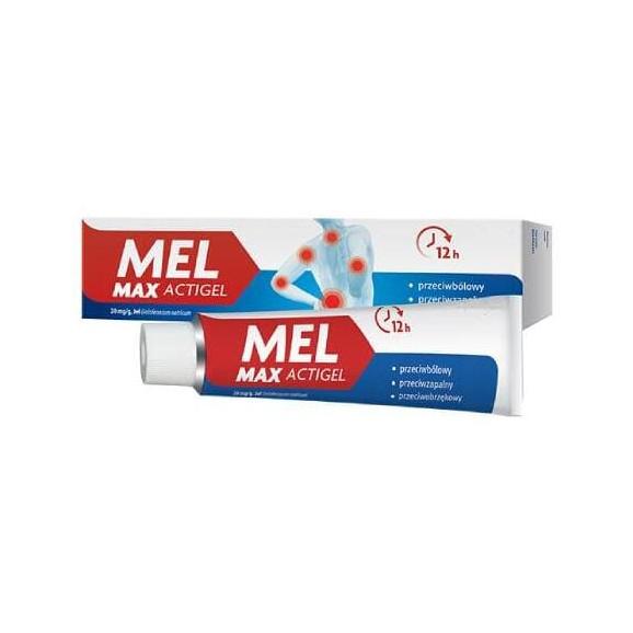 Podczas karmienia piersią Mel Max Actigel może być stosowany jedynie na zalecenie lekarza, ponieważ diklofenak przenika do mleka matki w niewielkich ilościach. W takim przypadku, leku nie należy nakładać na piersi karmiących kobiet, ani też na duże powierzchnie skóry lub długotrwale.