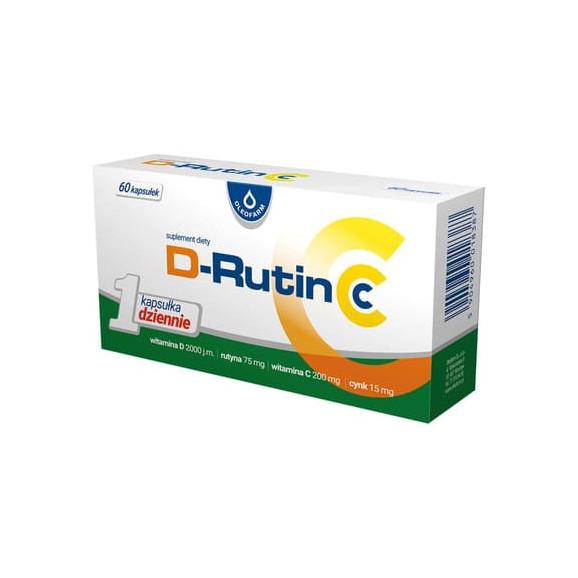 D-Rutin CC to suplement diety firmy Oleofarm w postaci kapsułek żelatynowych przeznaczonych dla osób dorosłych. W swoim składzie zawiera kompozycję witaminy D i C z cynkiem oraz rutyną. W 1 kapsułce znajduje się 75 mg rutyny, 2000 j.m. witaminy D, 200 mg witaminy C oraz cynk w ilość 15 mg. Korzystny efekt wynikający z deklarowanego działania występuje w przypadku spożycia 1 kapsułki dziennie.