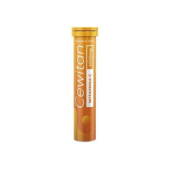 Cewitan Witamina C 1000 mg to wygodny do stosowania suplement diety w formie tabletek musujących o cytrynowym smaku do rozpuszczania w wodzie. Zalecana dzienna porcja preparatu pozwala na pokrycie referencyjnych wartości spożycia na witaminę C w 1250%. Witamina C wspiera prawidłową produkcję kolagenu przez organizm, w celu zapewnienia właściwego funkcjonowania naczyń krwionośnych, kości, chrząstek, dziąseł, skóry oraz zębów. Przyczynia się do utrzymania prawidłowego metabolizmu energetycznego. Pomaga w odpowiednim funkcjonowaniu układu nerwowego oraz utrzymaniu prawidłowych funkcji psychologicznych. Wspiera prawidłowe funkcjonowanie układu odpornościowego. Pomaga w ochronie komórek ciała przed stresem oksydacyjnym. Przyczynia się do zmniejszenia uczucia zmęczenia i znużenia. Witamina C w tabletkach musujących Cewitan sprawdzi się jako uzupełnienie codziennej diety osób dorosłych. Dla korzystnego efektu wynikającego z deklarowanego działania pij każdego dnia napój o pysznym smaku cytryny sporządzony z 1 tabletki musującej o wysokiej zawartości witaminy C. Opakowanie zawiera 24 sztuki zapewniające 24 dzienne porcje preparatu.
