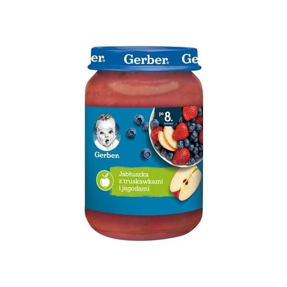 Gerber, deser, jabłuszka z truskawkami i jagodami, po 8 miesiącu, słoiczek, 190 g