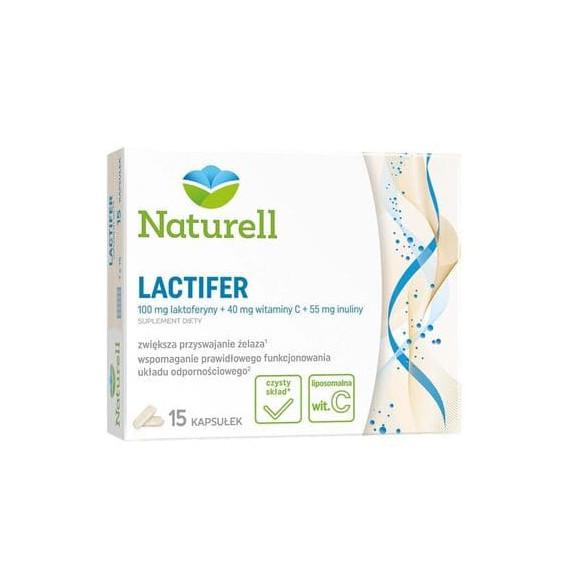 Naturell Lactifer o suplement diety z czystym składem, zawierający laktoferynę wzbogacony o liposomalną witaminę C oraz inulinę do stosowania w celu zwiększenia przyswajania żelaza oraz wspomagania prawidłowego funkcjonowania układu odpornościowego.