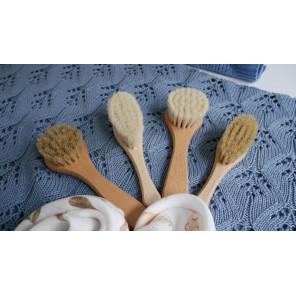 Pierwsza szczotka do włosów dla niemowląt marki Bocioland doskonale sprawdzi się do usuwania ciemniuchy, delikatnie masuje główkę dziecka oraz pielęgnuje pierwsze włoski. Wykonanie z naturalnej szczeciny sprawia, że czesanie jest przyjemne dla najmłodszych i co najważniejsze, nie elektryzuje włosków.