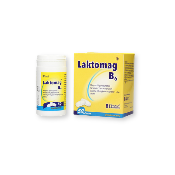 Laktomag B6 to produkt leczniczy zawierający magnez w postaci soli organicznej i witaminę B6, która zwiększa biodostępność magnezu. Lek do stosowania m.in. w profilaktyce niedoboru magnezu i/lub witaminy B6. Opakowanie zawiera 50 sztuk.
