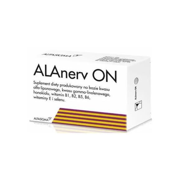 ALAnerv ON to suplement diety produkowany na bazie kwasu alfa-liponowego, kwasu gamma-linolenowego, honokiolu, witamin B1, B2, B5, B6, witaminy E i selenu. Działa odżywczo na komórki nerwowe i poprawia sprawność umysłową.