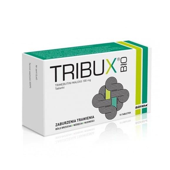 Tribux Bio zawiera trimebutynę w ilości 100 mg na tabletkę. Trimebutyna działa bezpośrednio na mięśnie gładkie przewodu pokarmowego i reguluje pracę (motorykę) przewodu pokarmowego. Nie wpływa na ośrodkowy układ nerwowy.