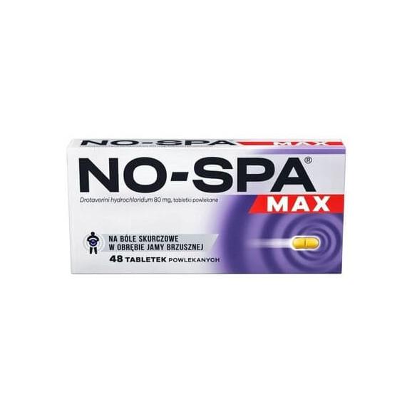 No-Spa Max jest to lek rozkurczowy, zmniejszający ból (bolesne skurcze) w obrębie narządów jamy brzusznej oraz miednicy mniejszej, czyli w obrębie przewodu pokarmowego (żołądka i jelit), dróg żółciowych i moczowych, a u kobiet również dróg rodnych.