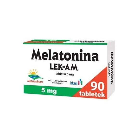 Melatonina LEK-AM 5 mg to lek OTC (wydawany bez recepty) w postaci białych, okrągłych tabletek przeznaczony dla osób dorosłych. Wskazaniem do stosowania leku są zaburzenia snu związane z zaburzeniami rytmu snu i czuwania, np. związanych ze zmianą stref czasowych, lub z pracą zmianową, oraz zaburzenia rytmu dobowego snu i czuwania u pacjentów niewidomych. Każda tabletka zawiera 5 mg syntetycznie produkowanego odpowiednika naturalnego hormonu melatoniny.