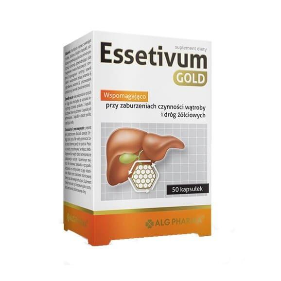 Essetivum Gold – to wysokiej jakości produkt zawierający specjalnie dobraną kompozycję składników aktywnych korzystnie wpływających na trawienie i pracę wątroby oraz dróg żółciowych. Jest to suplement diety w skład którego wchodzą między innymi pochodzące z ziaren soi fosfolipidy zawierające cholinę i fosfatydylocholinę.