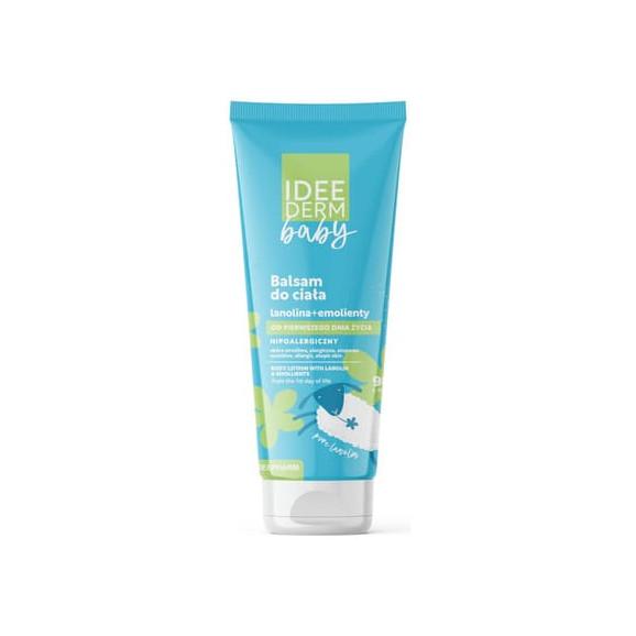 IDEE DERM BABY balsam do ciała działa kojąco, odżywczo i nawilżająco, a stworzyliśmy go z myślą o naturalnej pielęgnacji wrażliwej i wymagającej skóry dzieci i niemowląt od 1. dnia życia. Głównym składnikiem aktywnym balsamu jest hipoalergiczna lanolina, której skład przypomina ludzkie sebum i jest doskonale tolerowana przez delikatną skórę dziecka.