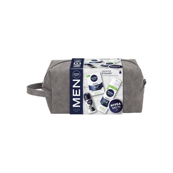 Nivea Men Sensitive Elegance, zestaw prezentowy dla mężczyzn w kosmetyczce, dezodorant roll-on, uniwersalny krem, pianka do go