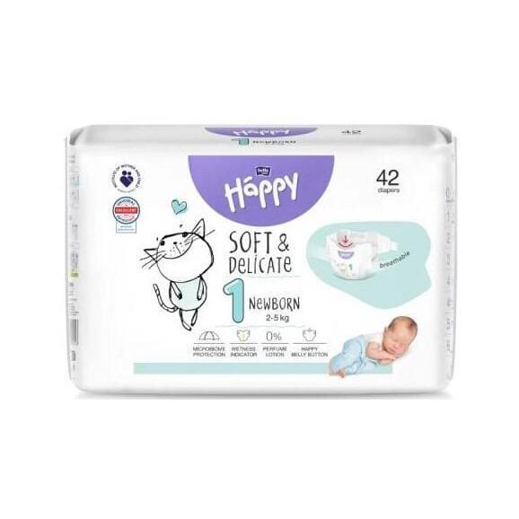 Bella Happy Soft & Delicate, pieluszki, rozmiar 1 Newborn 2-5 kg, 42 szt.