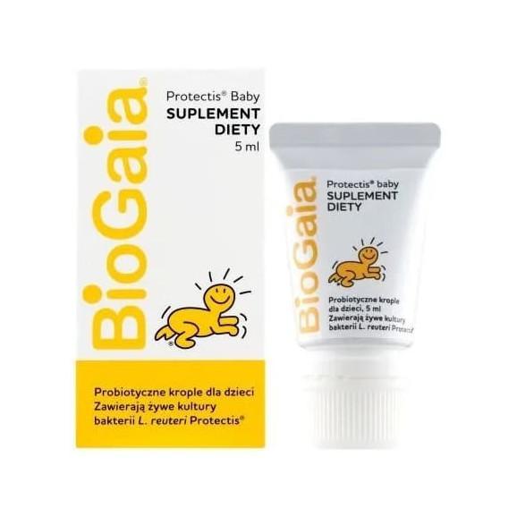BioGaia Protectis baby jest suplementem diety, zawierającym opatentowane szczepy bakterii kwasu mlekowego Limosilactobacillus reuteri Protectis (L. reuteri Protectis). Żywe kultury bakterii zawarte w kroplach BioGaia są istotnym elementem zrównoważonej diety. L. reuteri Protectis to szczep bakteryjny będący własnym patentem firmy BioGaia. Ponieważ L. reuteri Protectis występuje naturalnie w ludzkim organizmie, jest w unikalny sposób przystosowany do bytowania w nim.
