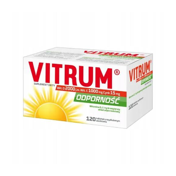 Vitrum Odporność to produkt o wysokiej zawartości niezbędnych składników (witaminy D, witaminy C i cynku) wspierających układ odpornościowy, zamkniętych w nowoczesnej tabletce o wydłużonym uwalnianiu, by zapewnić ich najlepsze wchłanianie.