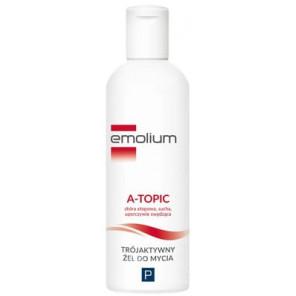 Żel myjący Emolium A-Topic działa wzmacniająco na barierę ochronną skóry, koi i łagodzi zaczerwienioną i podrażnioną skórę już po 1 użyciu. Łagodnie oczyszcza i nawilża, pozostawiając na skórze warstwę zabezpieczającą przed utratą wody. Nie narusza przy tym naturalnego pH skóry. Ponadto formuła zmiękcza i zmniejsza uczucie szorstkości skóry, przynosząc ulgę wysuszonej skórze.