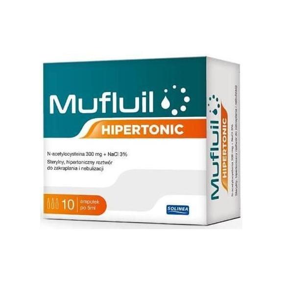 Roztwór do zakraplania i nebulizacji z N-acetylocysteiną i hipertonicznym roztworem chlorku sodu (3% NaCl). Rozrzedza gęsty i lepki śluz dzięki fizycznemu i mechanicznemu działaniu jego składników. Mufluil Hipertonic wskazany jest w leczeniu chorób układu oddechowego charakteryzujących się nadmierna produkcja gęstej i lepkiej wydzieliny takich jak: ostre zapalenie oskrzeli, przewlekłe zapalenie oskrzeli i jego powikłania, rozedma płuc, mukowiscydoza, rozstrzenie oskrzeli, zapalenie zatok, wysiękowe zapalenia ucha.