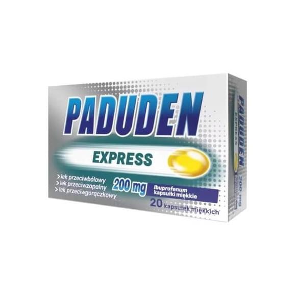 Paduden Express 200 mg to lek o działaniu przeciwbólowym, przeciwzapalnym i przeciwgorączkowym. Lek jest wskazany do stosowania u osób dorosłych i młodzieży w wieku powyżej 12 lat w celu łagodzenia objawów w postaci bólu o nasileniu łagodnym lub umiarkowanym, takich jak ból głowy, ból zębów, ból miesiączkowy, ból mięśni (przykurcze) lub ból pleców (ból okolicy lędźwiowej) jak również w stanach gorączkowych i gorączce oraz bólu po szczepieniu. Jeśli po upływie 3 dni w przypadku leczenia gorączki lub 3 dni w przypadku leczenia bólu u młodzieży, lub po upływie 5 dni w przypadku leczenia bólu u osób dorosłych, objawy nasilą się lub nie ustąpią, należy skonsultować się z lekarzem.