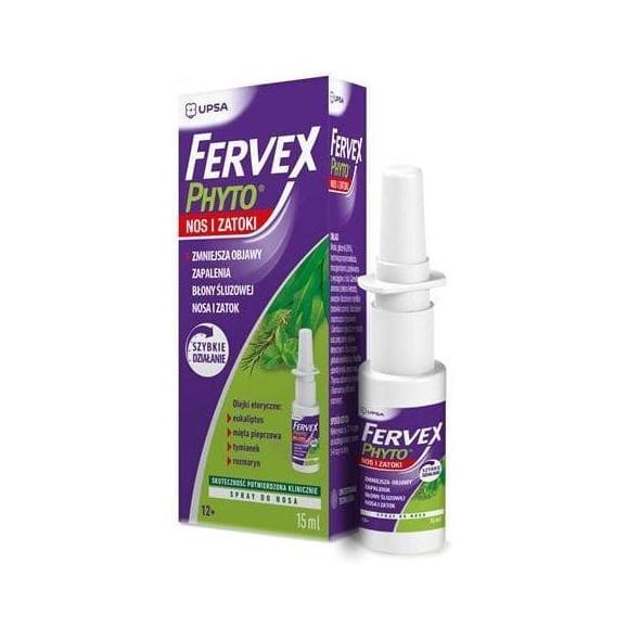 Fervex Phyto nos i zatoki spray to wyrób medyczny tworzący odporny, osmotyczny film ochronny na powierzchni błony śluzowej nosa, zmniejszając katar. Produkt przeznaczony dla osób dorosłych i dzieci powyżej 12 roku życia. Po rozpyleniu na błonę śluzową nosa, Fervex Phyto tworzy trwałą warstwę ochronną, odporną na działanie czynników zewnętrznych. Dzięki zdolności do przyciągania hipotonicznego płynu z głębszych warstw błony śluzowej, produkt inicjuje przepływ płynu od wewnątrz na zewnątrz. Ten proces mechanicznego oczyszczania powoduje usunięcie zanieczyszczeń, takich jak unoszące się cząsteczki białka, wirusy i bakterie, co prowadzi do klarowności przewodów nosowych. Dodatkowo, ciśnienie osmotyczne wytworzone przez Fervex Phyto wspomaga oczyszczenie zatok przynosowych, zmniejszając uczucie rozpierania i bólu. Stworzona warstwa stanowi efektywną barierę ochronną, chroniąc powierzchnię nosa przed wysuszeniem, podrażnieniem i szkodliwym wpływem czynników zewnętrznych.