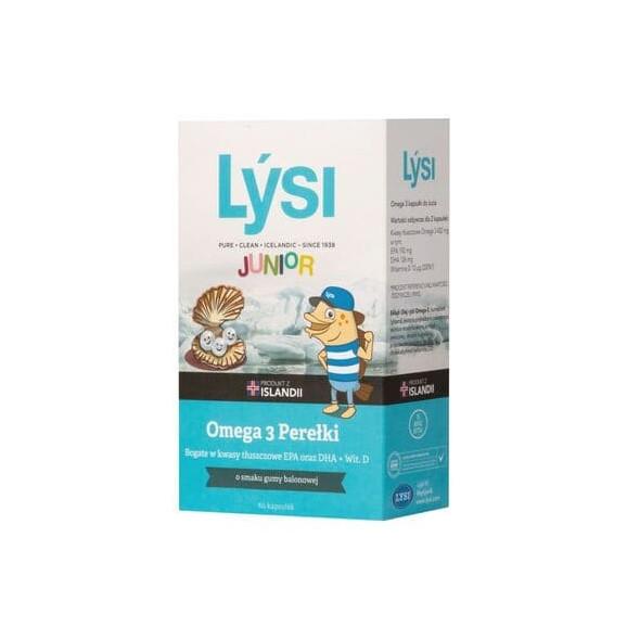 Lysi Omega 3 Perełki Junior, smak gumy balonowej, kapsułki do żucia, 60 szt.
