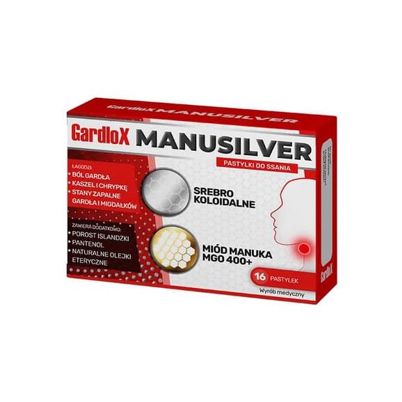 Gardlox Manusilver to preparat do stosowania w celu łagodzenia objawów chorobowych górnych dróg oddechowych w formie pastylek do ssania. Innowacyjne połączenie miodu Manuka i srebra nanokoloidalnego pomaga ograniczać rozwój chorobotwórczych drobnoustrojów, w tym bakterii, wirusów oraz grzybów. Preparat skutecznie nawilża błonę śluzową ust i gardła podrażnionych przez niekorzystne warunki temperaturowe, zanieczyszczenia powietrza lub nadmierne obciążenie. Gardlox Manusilver tworzy na powierzchni błony śluzowej film ochronny, dzięki czemu przywraca naturalną wilgotność, łagodzi obrzęk i wspiera regenerację błony śluzowej jamy ustnej i gardła. W skuteczny sposób poprawia tym jakość oddychania, pozostawiając jednocześnie uczucie lekkiego znieczulenia błony śluzowej gardła.