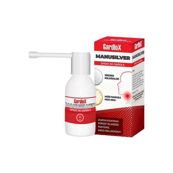 Gardlox Manusilver spray to wyrób medyczny do stosowania w celu łagodzenia objawów chorobowych górnych dróg oddechowych, takich jak: stan zapalny gardła i jamy ustnej, zapalenie migdałków, ból gardła, pieczenie i chrypka, spowodowanych przez infekcje bakteryjne, wirusowe oraz grzybicze. Skutecznie łagodzi podrażnienia, nawilża błonę śluzową jamy ustnej i gardła oraz pomaga utrzymać jej prawidłowe, naturalne funkcje obronne. Dodatkowo zapewnia uczucie lekkiego znieczulenia.