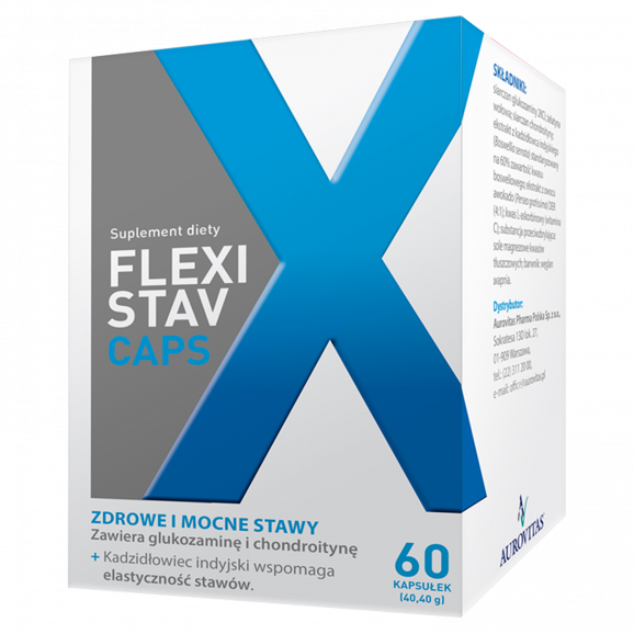 FlexiStav Caps to suplement diety opracowany z myślą o uzupełnieniu codziennej diety osób dorosłych, zarówno mężczyzn jak i kobiet. Każda kapsułka łączy w składzie wysokiej jakości glukozaminę i chondroitynę z ekstraktem z kadzidłowca indyjskiego oraz owocu awokado. Formuła została dodatkowo wzbogacona o witaminę C dla zapewnienia kompleksowanego działania.