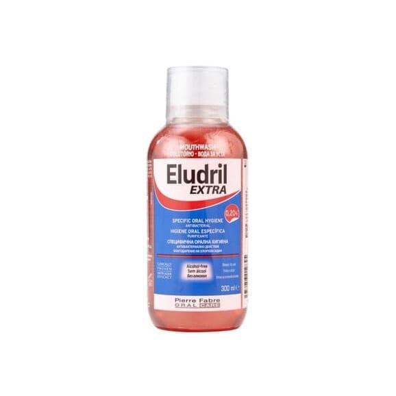 Pierre Fabre Eludril Extra bezalkoholowy płyn do płukania jamy ustnej z chlorheksydyną. Jest odpowiedni dla osób z wrażliwą błoną śluzową jamy ustnej. Ma świeży i łagodny smak. Nie szczypie. Tolerancję oceniano pod nadzorem stomatologa. Odpowiedni dla osób z implantami i użytkującymi protezy zębowe. Dla dorosłych i dzieci powyżej 6 roku życia.