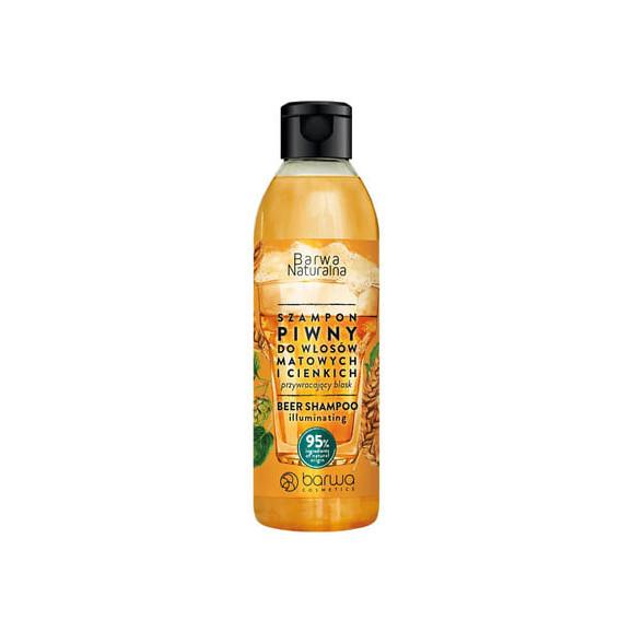Barwa Naturalna Piwny szampon przywracający blask przeznaczony do pielęgnacji włosów suchych, matowych i zniszczonych zabiegami fryzjerskimi. W formule kosmetyku zawarto 95% składników pochodzenia naturalnego, które zapewniają odpowiednią pielęgnację włosów i skóry głowy, zapewniając nawilżenie i regenerację. Receptura szamponu została zainspirowana tradycyjnym zabiegiem odżywczych płukanek piwnych, które sprawiają, że matowe i cienkie włosy, odzyskują lśniący i zdrowy wygląd.