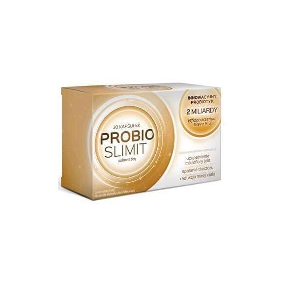 Probioslimit to suplement diety zawierający innowacyjny probiotyk Bifidobacterium breve B-3 w celu uzupełnienia mikroflory jelit oraz składniki wspierające spalanie tłuszczu i redukcję masy ciała.