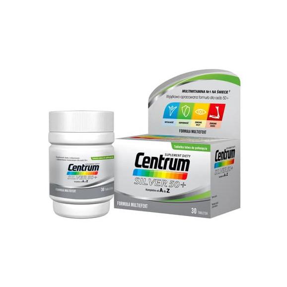 Centrum® Silver 50+ Kompletne od A do Z to suplement diety w postaci tabletek stworzony specjalnie z myślą o potrzebach żywieniowych osób w średnim wieku, które ukończyły 50 lat.