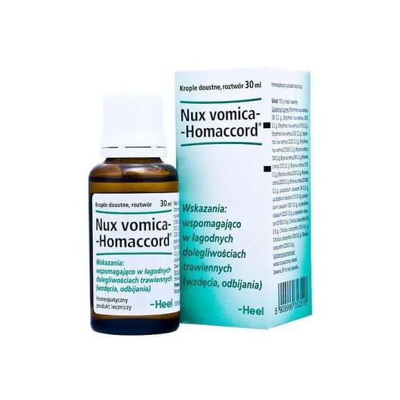 Krople doustne Nux vomica-Homaccord są lekiem homeopatycznym ze wskazaniami leczniczymi, przeznaczonym do stosowania wspomagająco w łagodnych dolegliwościach trawiennych takich jak: wzdęcia, czy odbijanie.