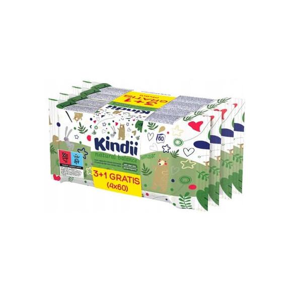 Cleanic Kindii Natural Balance, chusteczki nawilżane dla niemowląt i dzieci, 4 x 60 szt.