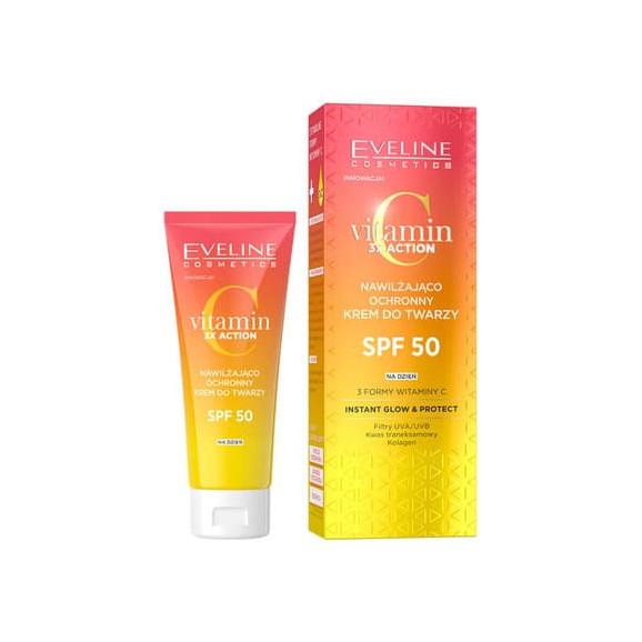 Eveline Cosmetics Vitamin C 3x Action, nawilżająco-ochronny krem do twarzy, SPF 50, 30 ml