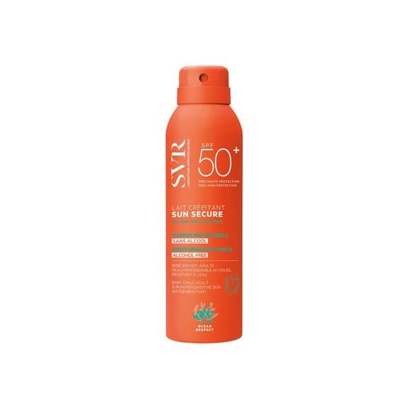 SVR Sun Secure Lait Crepitant łączy w swojej recepturze kompozycję filtrów z technologią antyoksydacyjną zapewniającą dermatologiczną ochronę przed wszystkimi rodzajami promieniowania: UVA, UVB oraz światła widzialnego i podczerwieni. Połączenie fotostabilnych filtrów wytwarza fizyczną barierę ochronną na powierzchni skóry. Dodatkowo kompleks antyoksydacyjny przeciwdziałają przedwczesnemu starzeniu się skóry i powstawaniu przebarwień. Zawarte w mlecznej piance filtry są przyjazne dla środowiska morskiego.