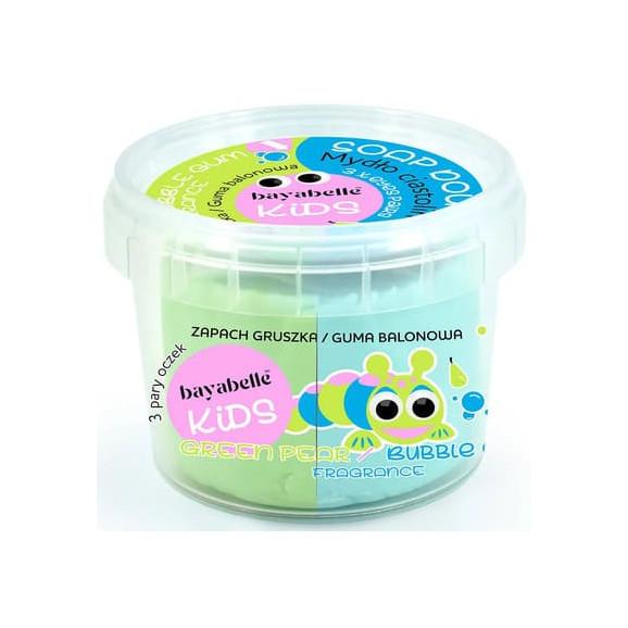 Ciastolina Duo Color z niespodzianką od marki Bayabelle Kids, o zapachu soczystej gruszki i słodkiej gumy balonowej to elastyczne mydło, które ugniata się i formuje jak ciastolina, a po zwilżeniu wodą pieni się i myje jak zwykłe mydło. W pojemniczku znajdziesz: