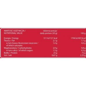 Wysoka zawartość białka przyczynia się do wzrostu masy mięśniowej.
