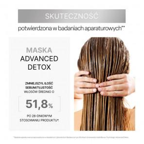 Maska Biovax Trychologic Advanced Detox jest przeznaczona do kompleksowej pielęgnacji włosów i skóry głowy wymagających głębokiego oczyszczenia i regeneracji. Zawiera Detox CPLX i Pro-Renewal CPLX wraz z białą i zieloną glinką, które pomagają w regulacji wydzielania sebum oraz neutralizowaniu metali osadzających się na włosach. Maska dodaje włosom lekkość, sypkość i objętość, jednocześnie kojąc podrażnienia skóry głowy. Produkt przebadany klinicznie pod nadzorem trychologicznym.