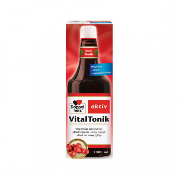 Doppelherz® Aktiv Vital Tonik to suplement diety w płynnej postaci zawierający ekstrakty roślinne z głogu, melisy i skórek winogron oraz wysoką ilość witamin i żelaza. Skład preparatu wzmacniająco-tonizującego został dobrany z myślą o osobach chcących zadbać o zdrowie serca, w tym w szczególności o osobach w sile wieku.
