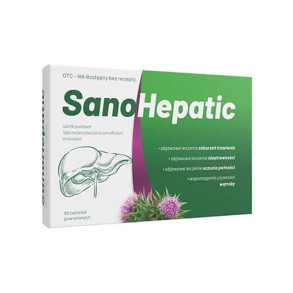 Lek SanoHepatic zawiera w swoim składzie suchy wyciąg z owoców ostropestu plamistego. To produkt leczniczy roślinny stosowany w objawowym leczeniu zaburzeń trawienia, uczucia pełności i niestrawności oraz we wspomaganiu funkcji wątroby, po wykluczeniu przez lekarza poważnych schorzeń.