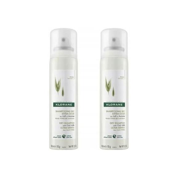 Klorane, szampon suchy z mleczkiem z owsa, 2 x 150 ml