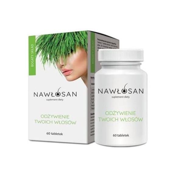 Suplement diety Nawłosan zawiera starannie dobraną kombinację składników o kompleksowym działaniu na kondycję włosów. Preparat zawiera aminokwasy, będące źródłem keratyny, która jest podstawowym budulcem komórek włosowych.