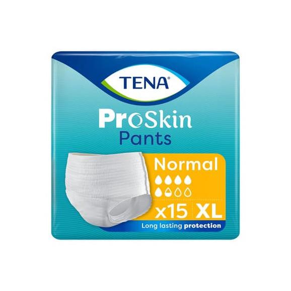 W opakowaniu znajduje się 15 sztuk jednorazowych majtek Tena® ProSkin Pants Normal w rozmiarze XL.