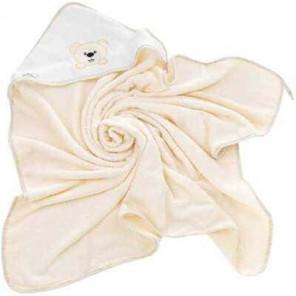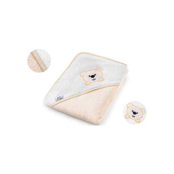Bocioland, okrycie kąpielowe z kapturkiem Miś, 80 cm x 80 cm, beżowe, 1 szt.