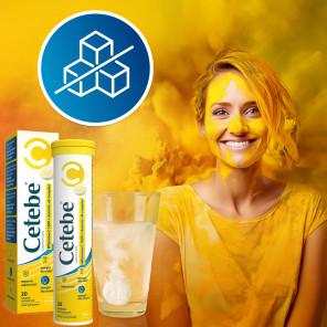 Cetebe® Witamina C 1000 mg łączy w sobie moc witaminy C w dużej dawce, naturalny wyciąg z owoców Aceroli oraz witaminy z grupy B. Ma orzeźwiający cytrynowy smak.