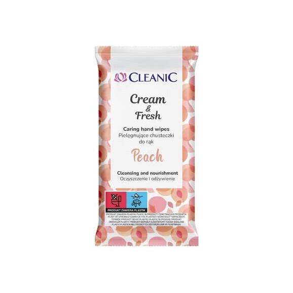 Cleanic Cream & Fresh, pielęgnujące chusteczki do rąk, Peach, 15 szt.
